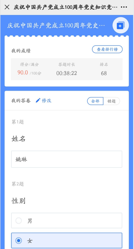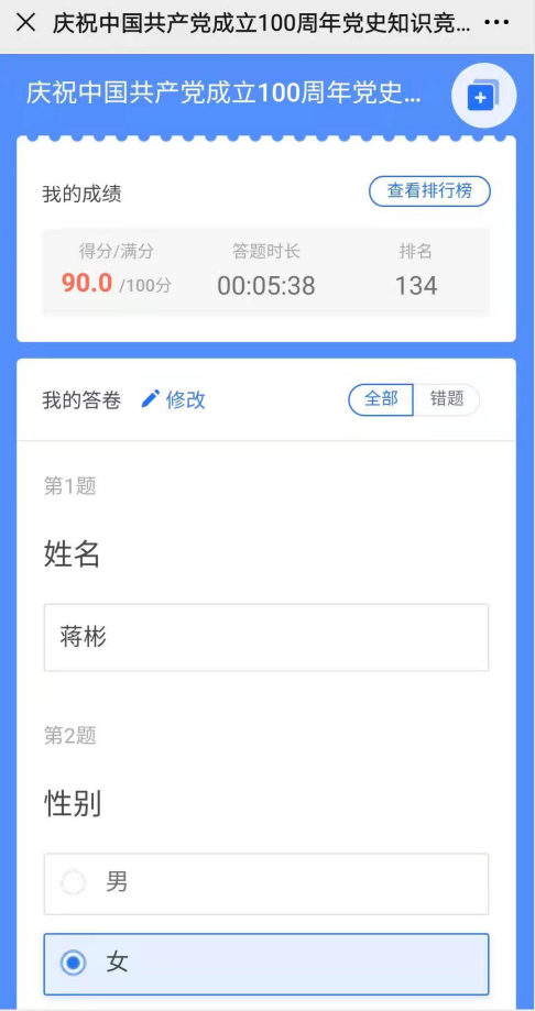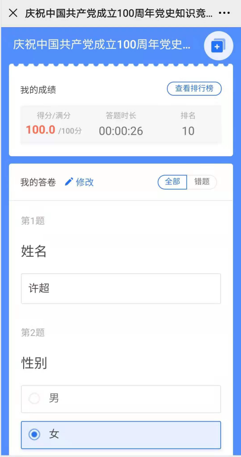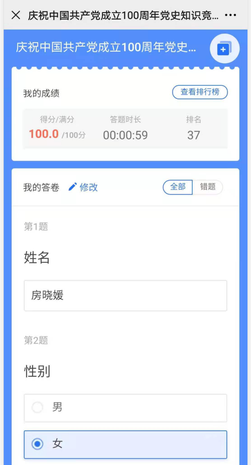學黨史 強信念 跟黨走:公司黨支部組織開展黨史學習教育線上答題