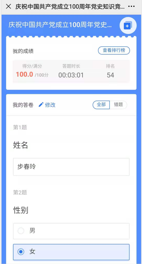 通過集體答題,一方面加深了對黨史相關知識的學習和了解,另一方面增強了黨支部的凝聚力,達到以答促學、以學促用的目的。讓每名黨員重溫了建黨百年的風雨之路,用黨的奮斗歷程鼓舞斗志,用黨的光榮傳統堅定信念,用黨的歷史經驗啟迪智慧。